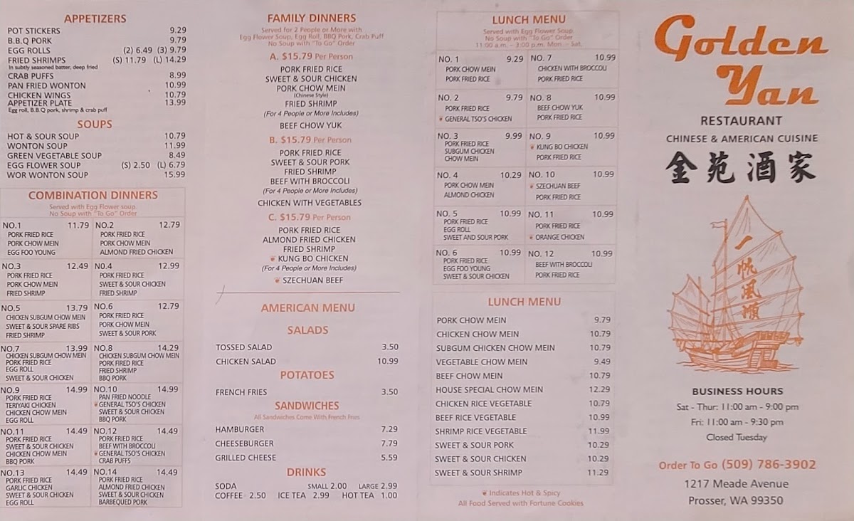Goldan Yan Restaurant Menu